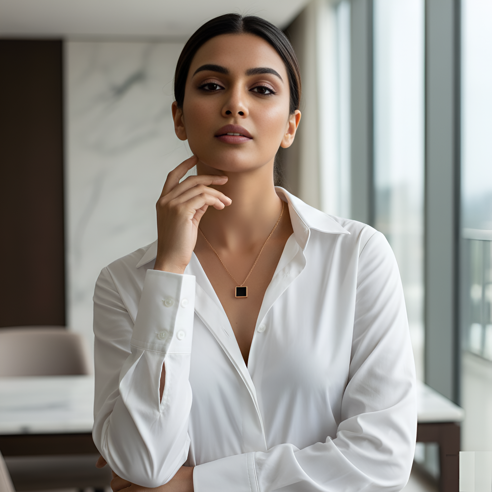 Redefine modern elegance with the ARLOMI Black Square Pendant Necklace — a statement of minimal luxury.